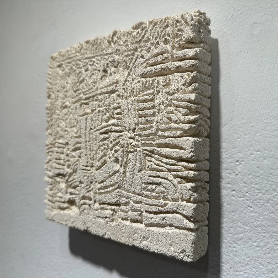 Connie Noyes | Ridge, Plaster, glue, and pigment on repurposed canvas, 10 × 10 x 3 inches