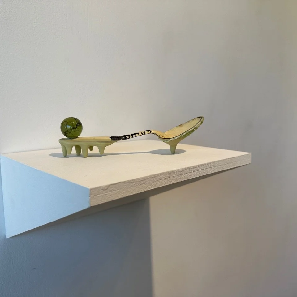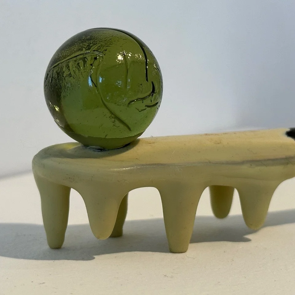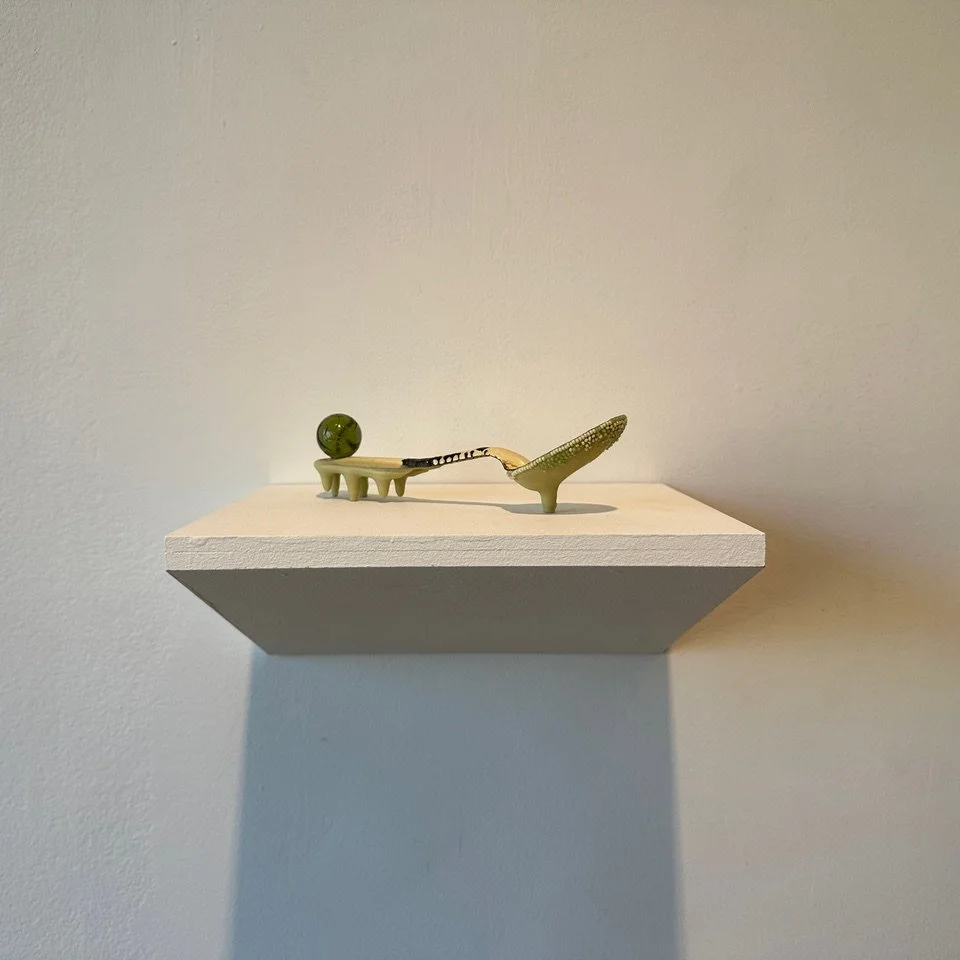 Jennifer Mannebach | Digress, 2025, Hydrocal, wood, acrylic rod, glass, acrylic paint 7.5 x 5 x 5 inches