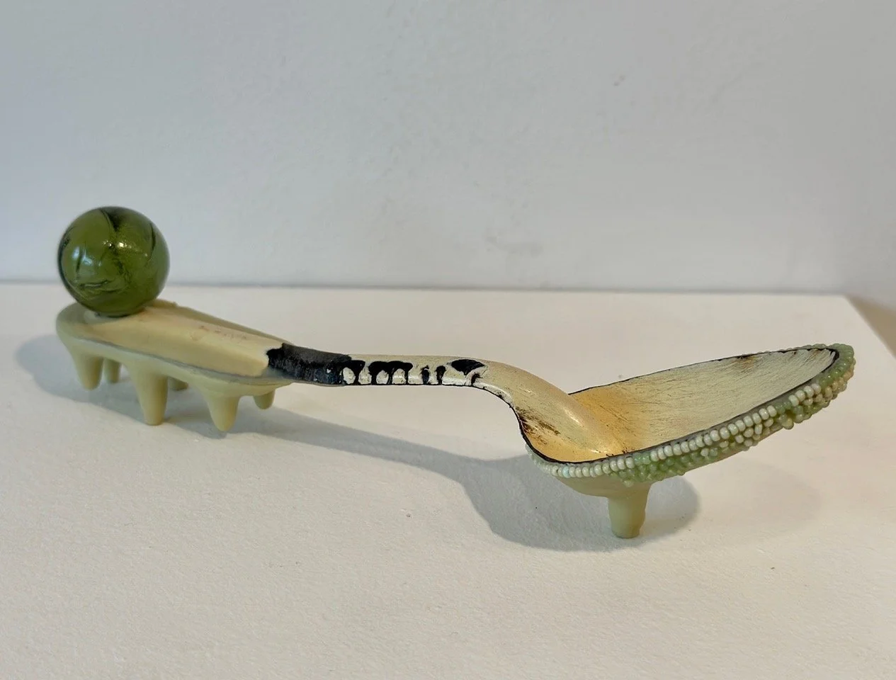 Made from found objects, Catherine Jacobi's sculptures give new meaning to everyday articles. Artists like Robert Rauschenberg, Tara Donovan, and Ai Weiwei have used art to transform commonplace items and express new concepts through their artistic manipulations. Jacobi continues this genre by targeting topics surrounding her today.