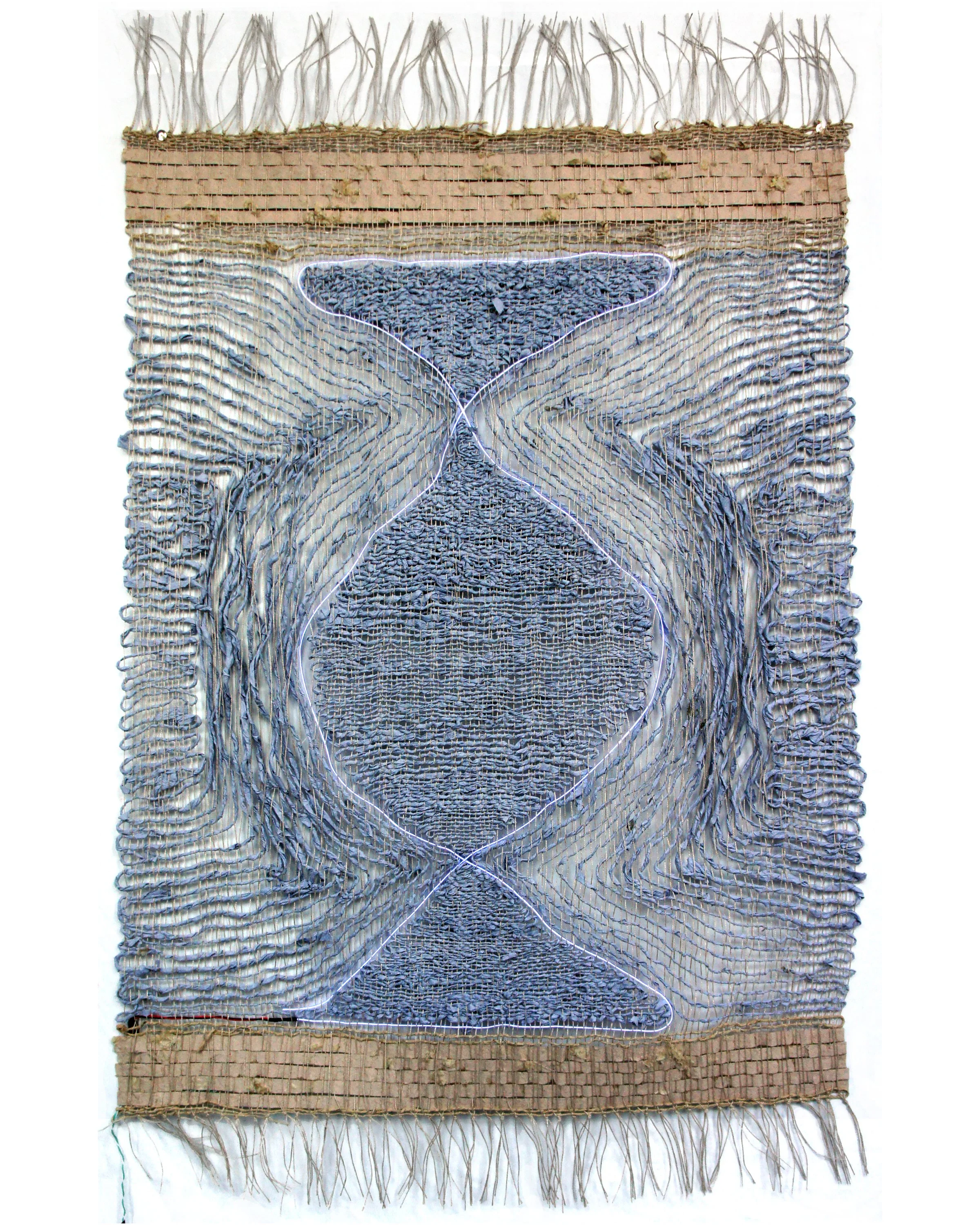 The Riverside Arts Center's exhibition, In the Circle of Melissa Potter, features a fabric quilt and floor loom weavings made by her mother and father Isota and Gregory Potter, representing some of the handwork instilled in Melissa Potter's upbringing. Like her parents, the artist uses craft traditions in Tusheti, Rug 3 and Soumak Scrap, tapestry weavings made with handmade paper thread and repurposed handmade paper scraps. Her artworks go beyond aesthetics through her concept of planting heirloom seeds in order to propagate plants used in the hand papermaking, drop spindling and weaving, while paying homage to the histories and people she encounters in her journeys.