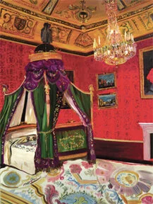 In her recent paintings, Vergara expands on themes of decadent materialism and excess. Depicting luxurious home interiors, she presents opulent rooms in the Baroque style. The patterns Vergara uses are intricate and compulsive, in an attempt to visually overwhelm the viewer. This use of pattern serves to signify excessive wealth and social status, or as Vergara states, to depict “expensive hoarders.” By referencing the art historical past, Vergara comments on current socio-economic issues. She also builds complex layers of meaning in the work, as the paintings embody contradictory impulses of pleasure, desire and revulsion.