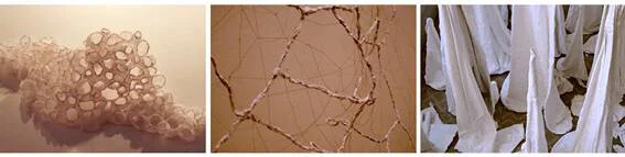 The works included span a variety of mediums. They embody a diverse range of haptic sensibilities, from concrete physicality to ephemeral delicacy. Ceramic, plaster, wood, metal, concrete, cloth, blood, paper, wax, and tissue are among the materials incorporated into the different pieces. Attention to presentation also plays a vital role. Some pieces are intended to function in a variety of settings, while others are site-specific, including outdoor installation work in the sculpture garden.